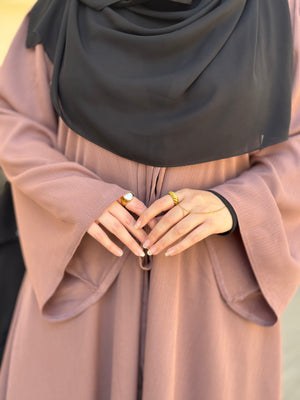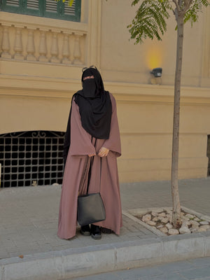 العباية دي معمولة من خامة حرير مستورد فاخر، بتجمع بين الهدوء والرُقي في كل تفصيلة.